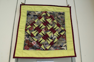 Last month I visited an exhibition by the Ayrshire Quilters, one of whose quilts you can see above, and this month I joined the group for the first time. I was introduced to the group by Sheila, who blogs as Bluepatch Quilter. It was lovely to meet in real life someone that I have only encountered virtually before!