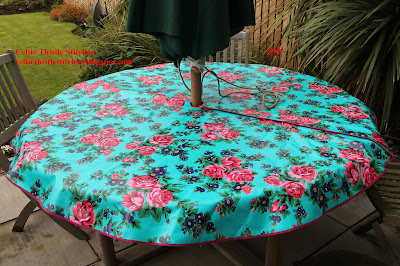 For a while now I have been wanting to update the tablecloth for our garden table, as it was cotton and purchased before the table, so didn't have a space in the centre for the parasol pole. I did cut a space out a while ago, but as we tend to leave the parasol in the table it meant that the tablecloth had to stay put too. That parasol is too heavy to be lifting in and out on a regular basis :)