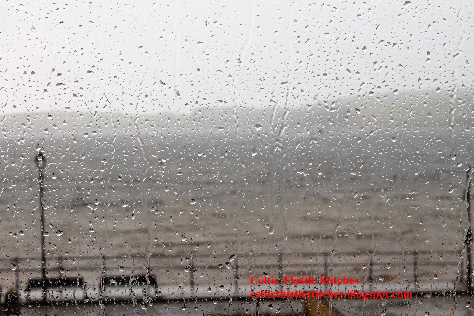 Eventually my tablecloth was complete, but I couldn't rush out to try it out as this was the view out of my sewing room window.